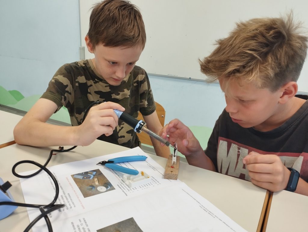 Predstavljene bodo osnovne elektronske komponente, električni tokokrogi ter varno rokovanje s spajkalnikom.